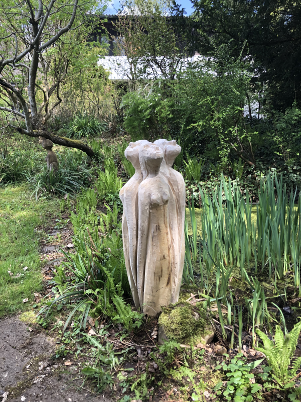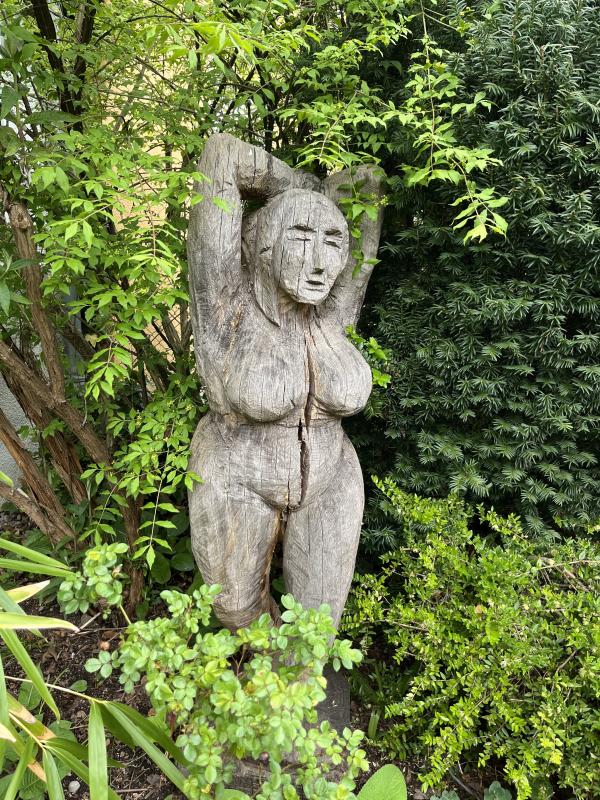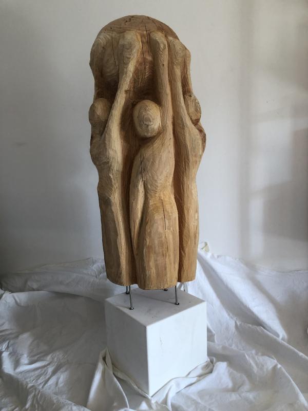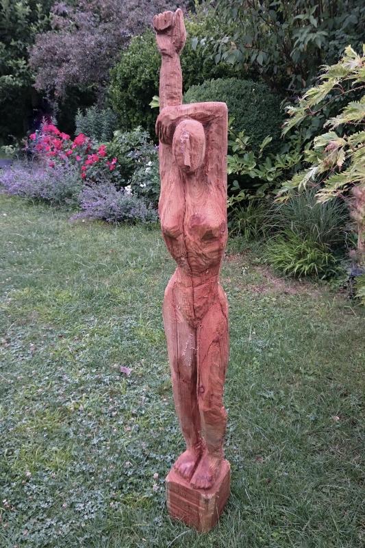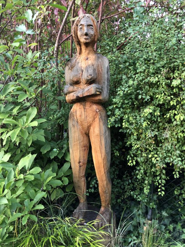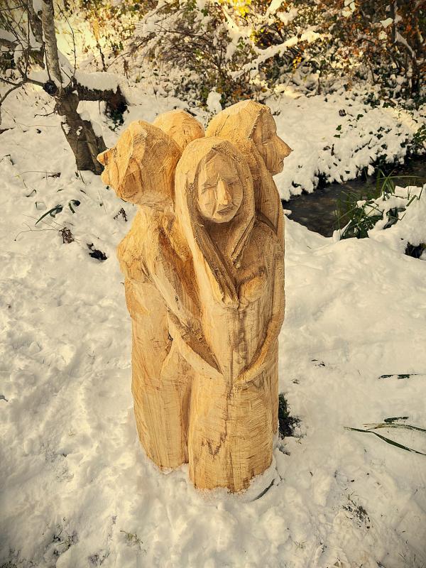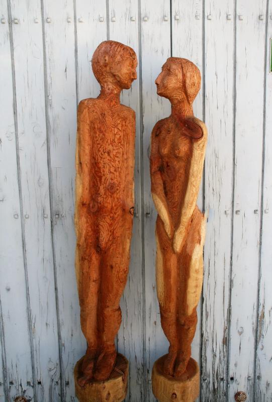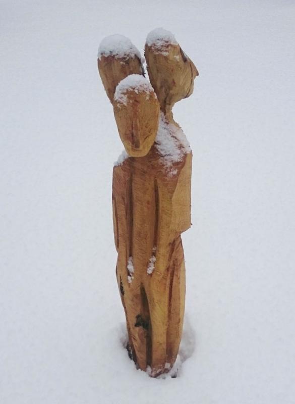 Die Gestaltung der Skulpturen ist niemals endgültig. Das Wetter verändert das Holz und lässt die Figuren weiterleben.