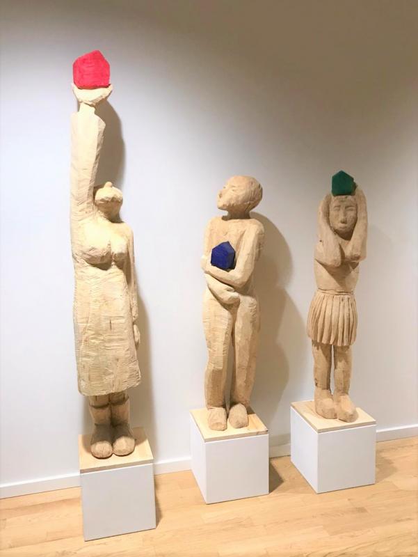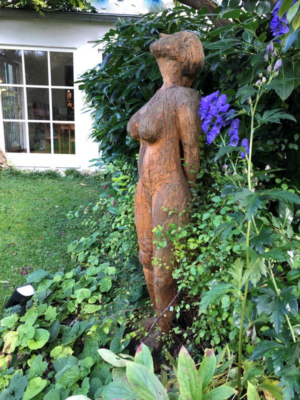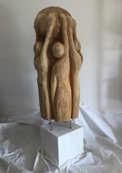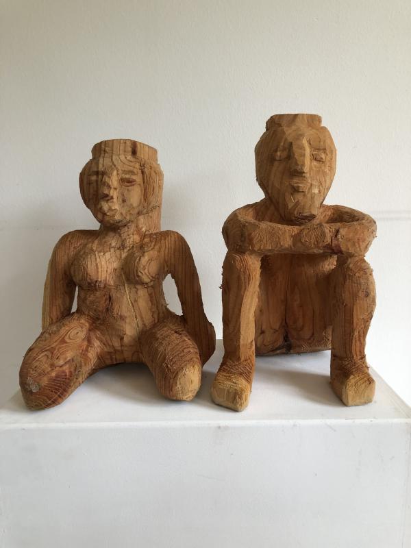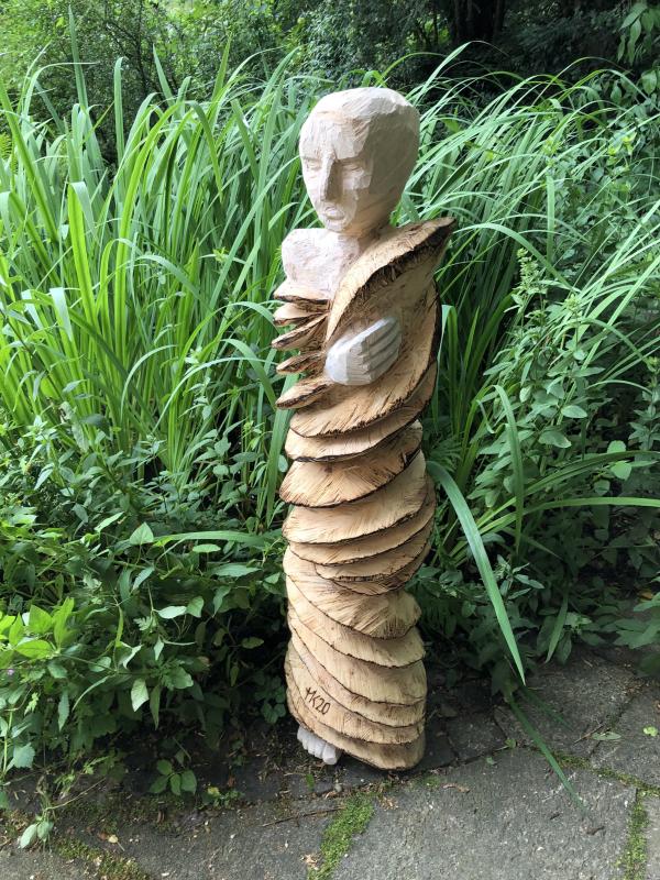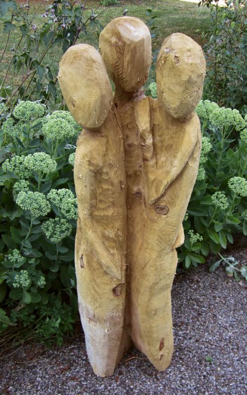 Die Gestaltung der Skulpturen ist niemals endgültig. Das Wetter verändert das Holz und lässt die Figuren weiterleben.